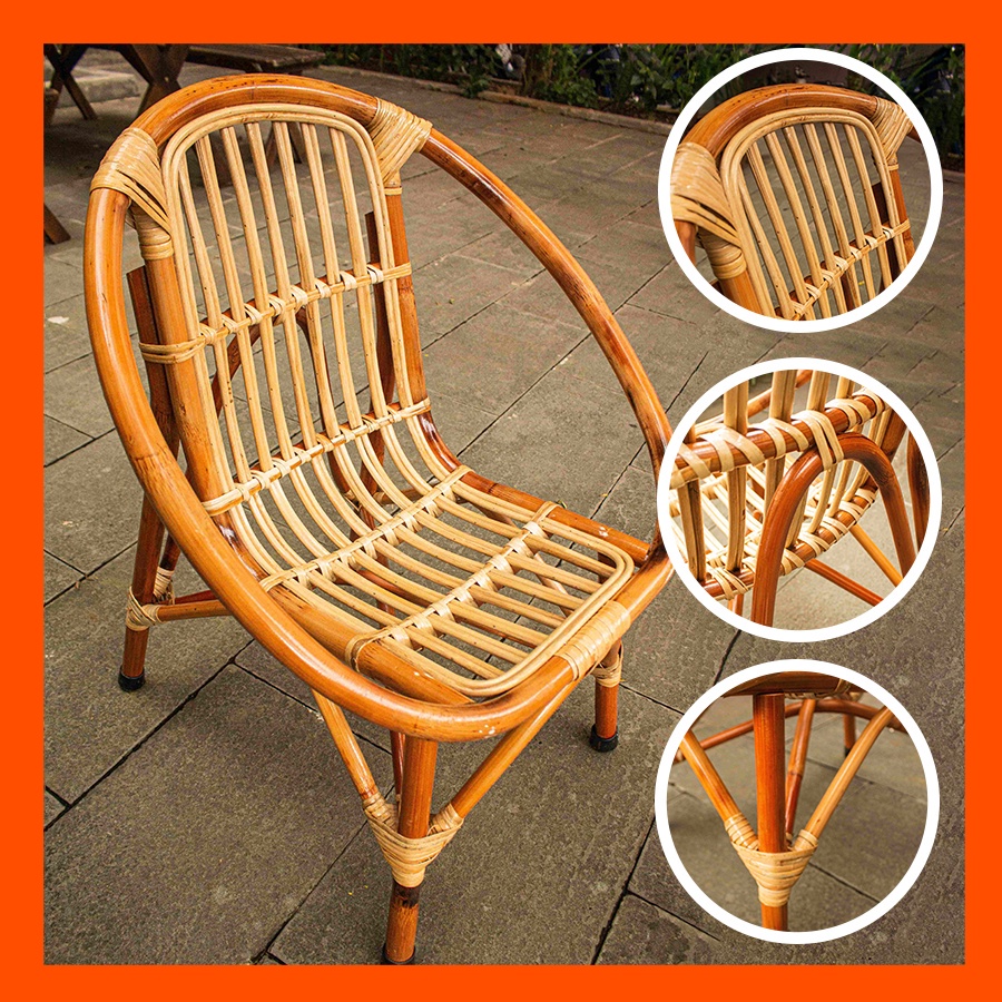 -Chất liệu: Ghế hoàn thiện tới 95% là mây tự nhiên, đã có lớp sơn PU làm tôn lên vẻ đẹp ghế. Các mấu nối được đóng đinh mộc, sử dụng dây nhựa giả mây để cố định, tạo vẻ đẹp riêng cho ghế