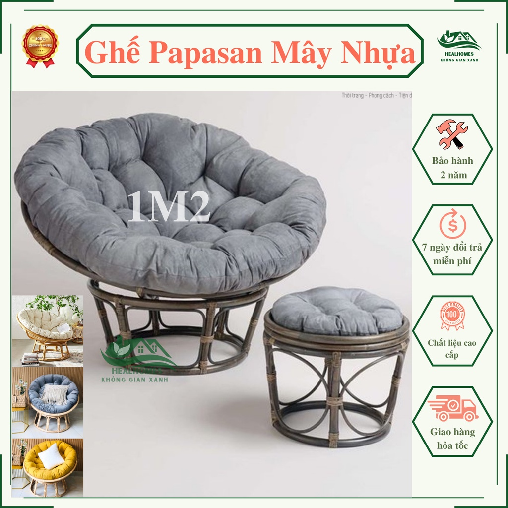 Ghế lười thư giãn Papasan 1m2 mây nhựa phòng ngủ cho bé, decor ban công nằm thư giãn, trang trí phòng khách / HealHomes