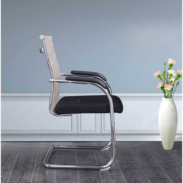 Cấu tạo khung thép mạ crome chắc chắn, phần tựa lưng hơi cong giúp ôm sát cơ thể và hỗ trợ nâng đỡ bộ phận cột sống thẳng tự nhiên, giảm thiểu sự mệt mỏi khi ngồi họp lâu.