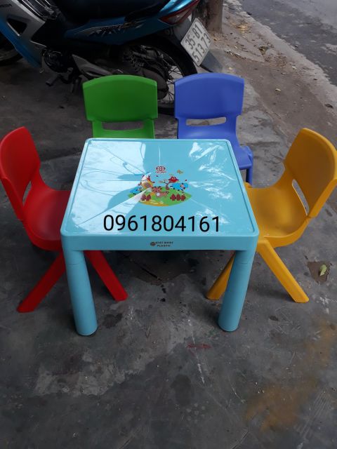 - ghế ngồi cùng bàn học tập giúp cho bé tô màu, chơi đồ chơi, mà ko tốn diện tích sau khi sử dụng.