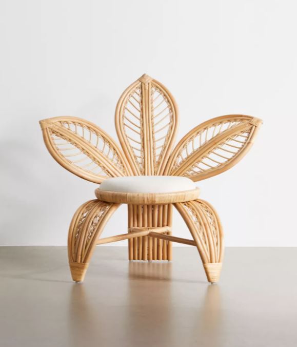Hãy thể hiện phong cách boho-cool với chiếc ghế mây nổi bật này, lưng ghế tạo hình ba chiếc lá sắc xả
