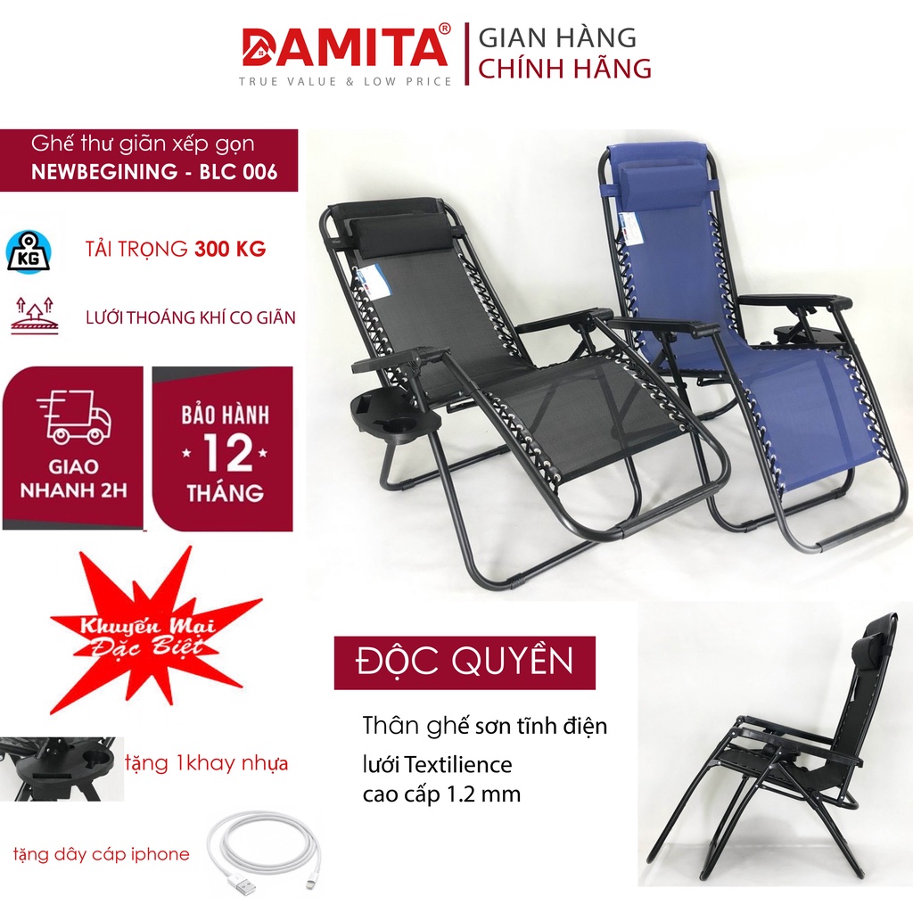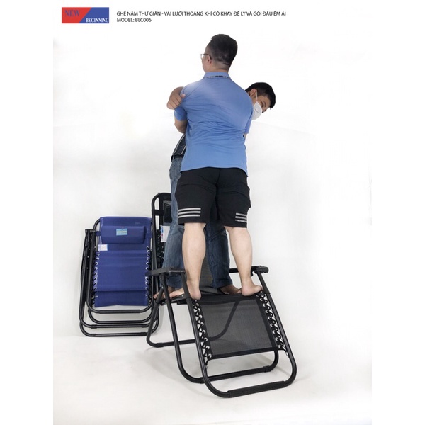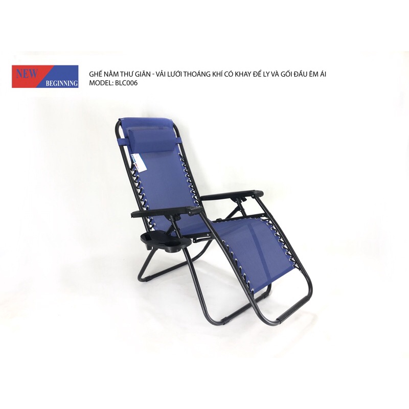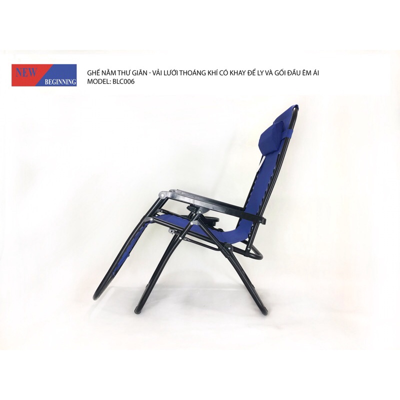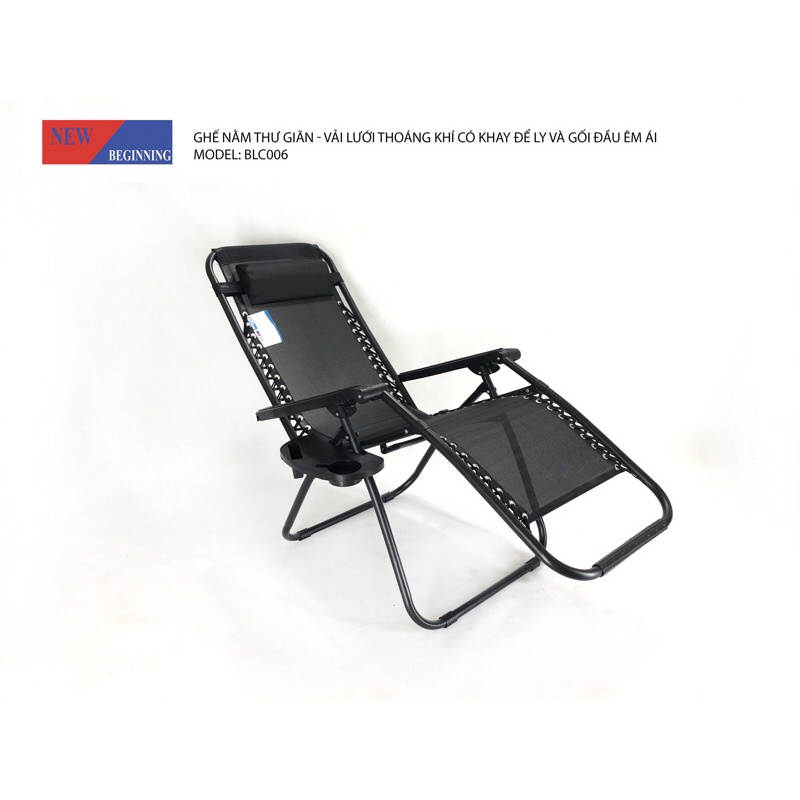 Ghế nằm thư giãn - ghế ngủ trưa văn phòng - gập gọn - thoáng khí - có khay để bình nước và gối đầu - New BeginningMã hàng: BLC006