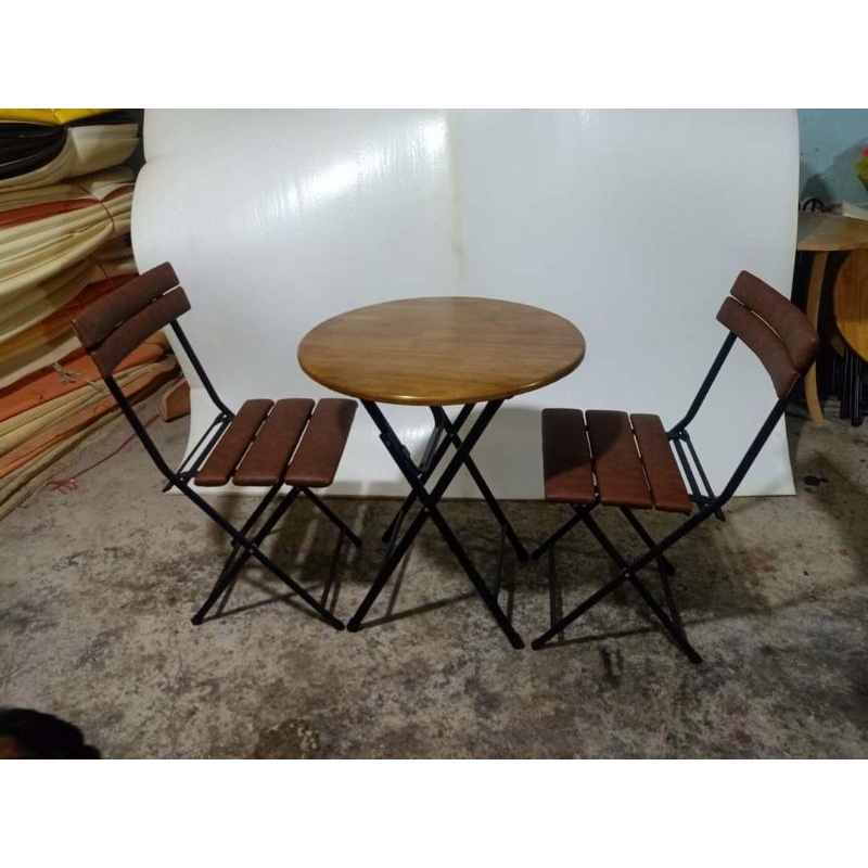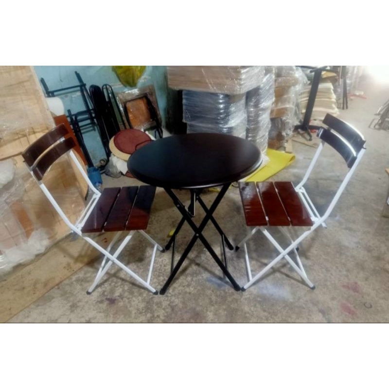 Ngoài ra có bàn mặt gỗ cao su đường kính 60 cm cao 70 cm ( chân thép sơn tĩnh điện chống gỉ )