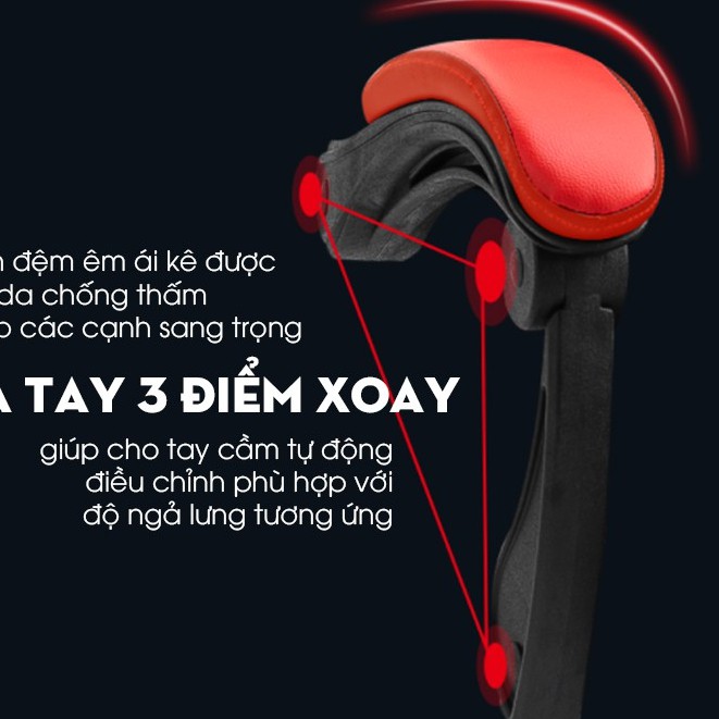 - Phần tay ghế thiết kế 3 điểm xoay giúp tự động điều chỉnh theo