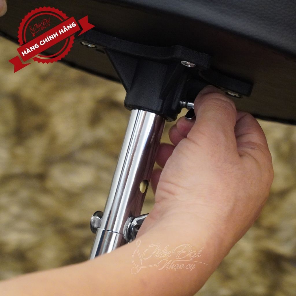 Ghế ngồi có thể tùy chỉnh linh hoạt độ cao với tấm đệm cực kỳ mềm mại giúp người chơi có thể ngồi hàng giờ trên nó. Được thiết kế bằng kim loại chắc chắn với các đế cao su chống trợt hiệu quả. Chốt vặn chắc chắn ghế ngồi linh hoạt cho những tay trống
