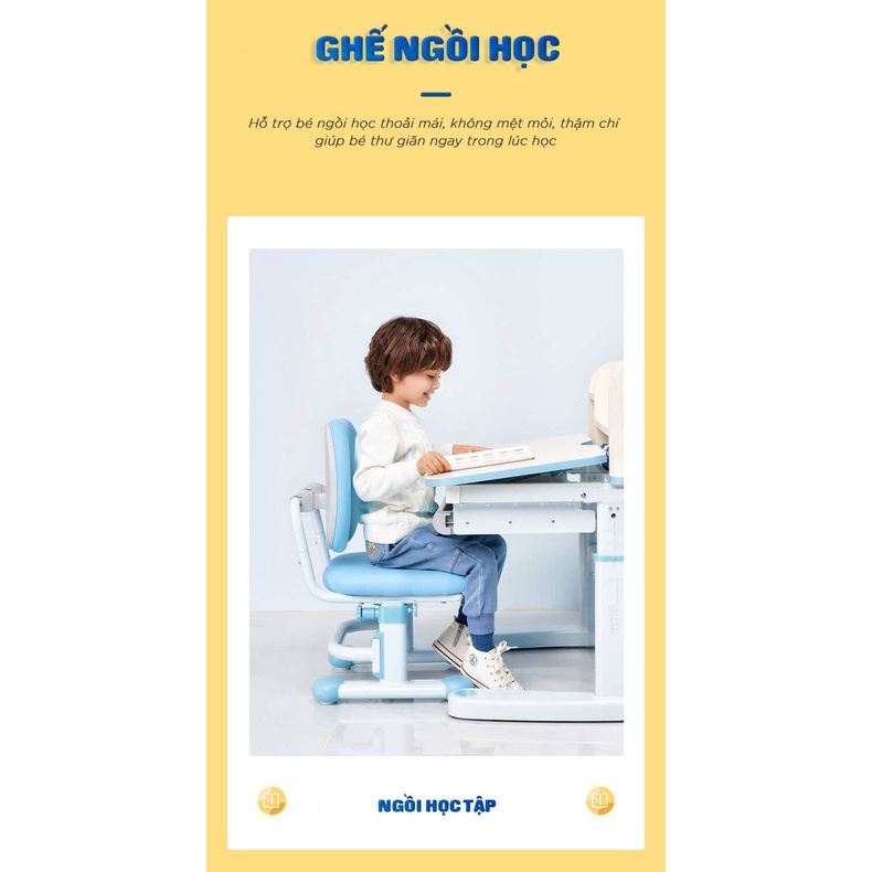 - Ghế có chân trụ kép chữ T chắc chắn được phủ sơn tĩnh điện, ĐIỀU CHỈNH ĐƯỢC ĐỘ CAO CHO BÉ DÙNG ĐƯỢC TRONG SUỐT 12 NĂM HỌC ĐẦU ĐỜI.