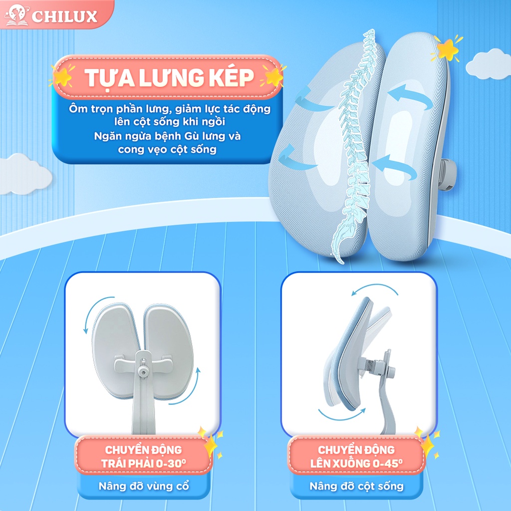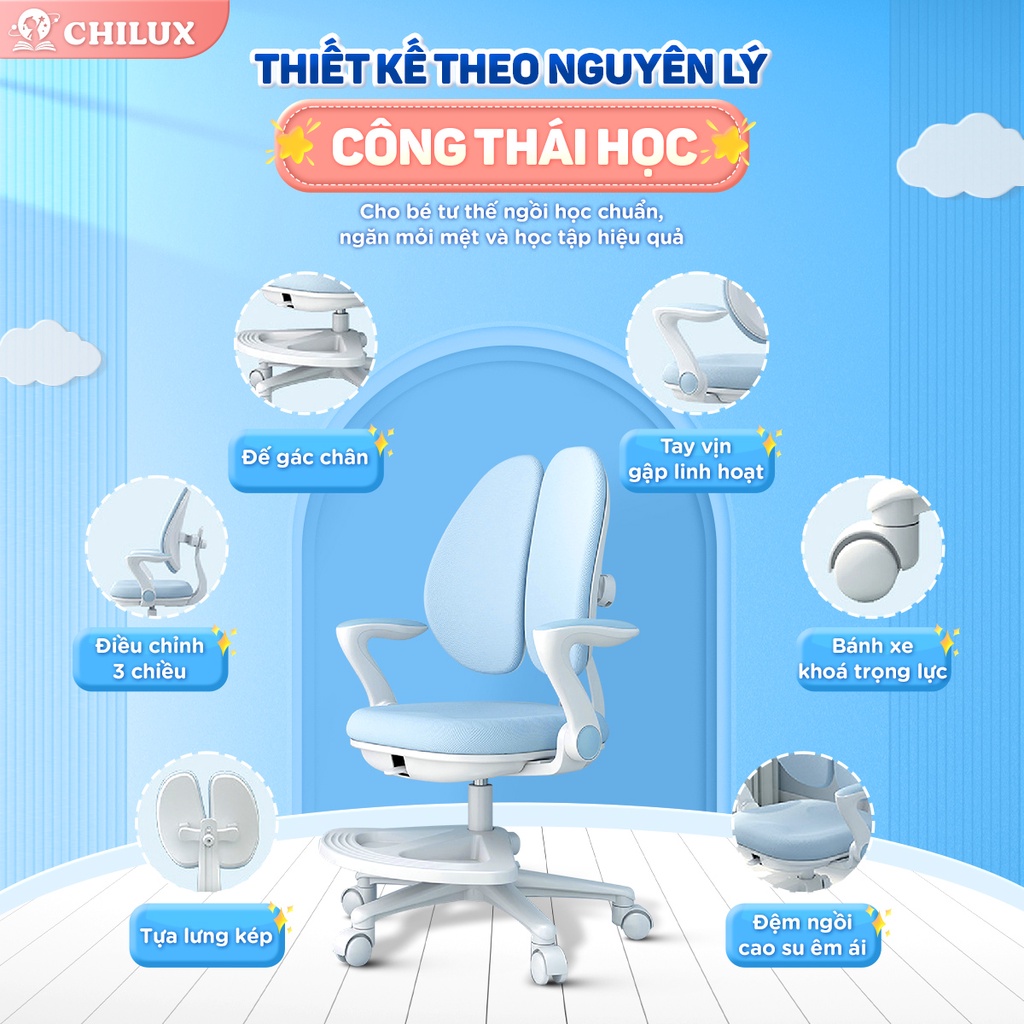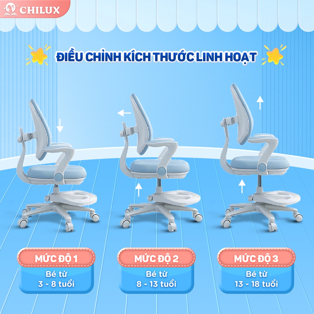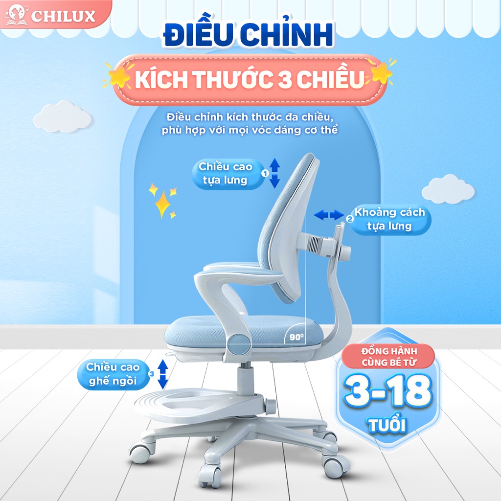 Ghế ngồi học chống gù, đúng tư thế cho bé Chilux G18, bảo vệ cột sống, có thể thay đổi chiều cao