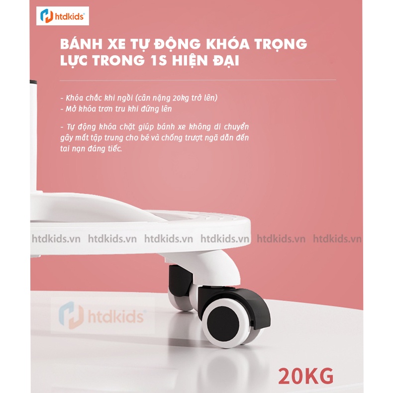 ✔️ Bánh xe tự động khóa trọng lực trong 1s hiện đại: Tự động khóa chặt giúp bánh xe không di chuyển gây mất tập trung cho bé và chống trượt ngã dẫn đến tai nạn đáng tiếc.