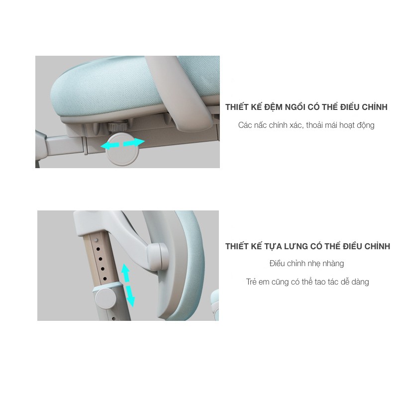 ✅ Ghế thay đổi chiều cao phần đệm ngồi và tựa lưng giúp bé có được tư thế ngồi thoải mái nhất cho cột sống.