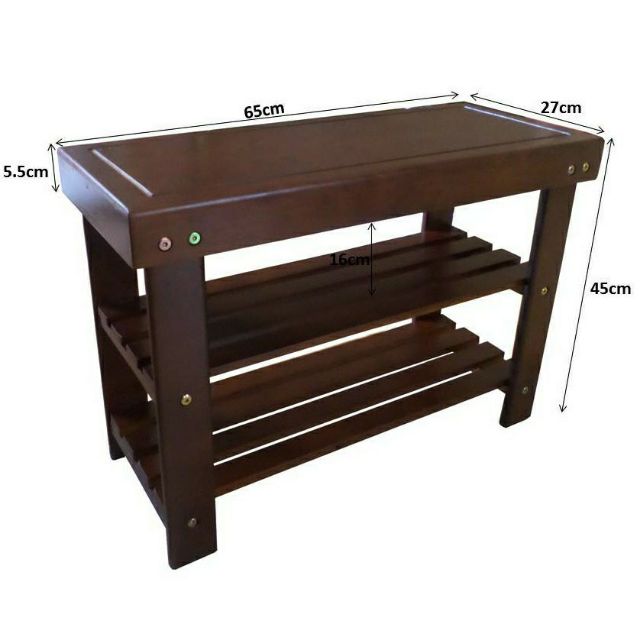 • Quy cách: 2 tầng, rộng 65cm, sâu 27cm, cao 45cm (mỗi tầng cao 16 cm), dày dặn và chắc chắn. Ngồi trực tiếp trên kệ để mang giày, dép