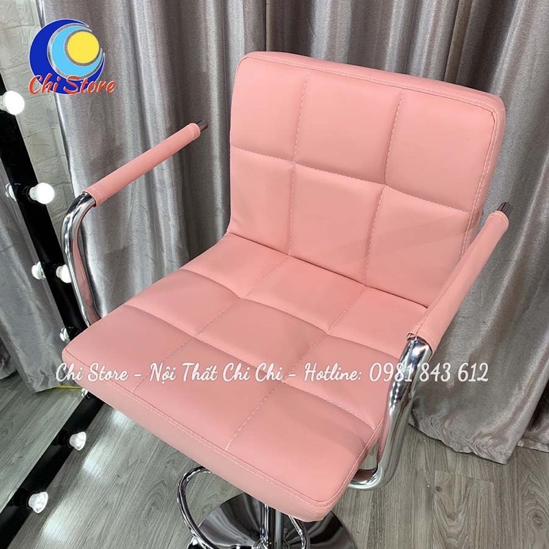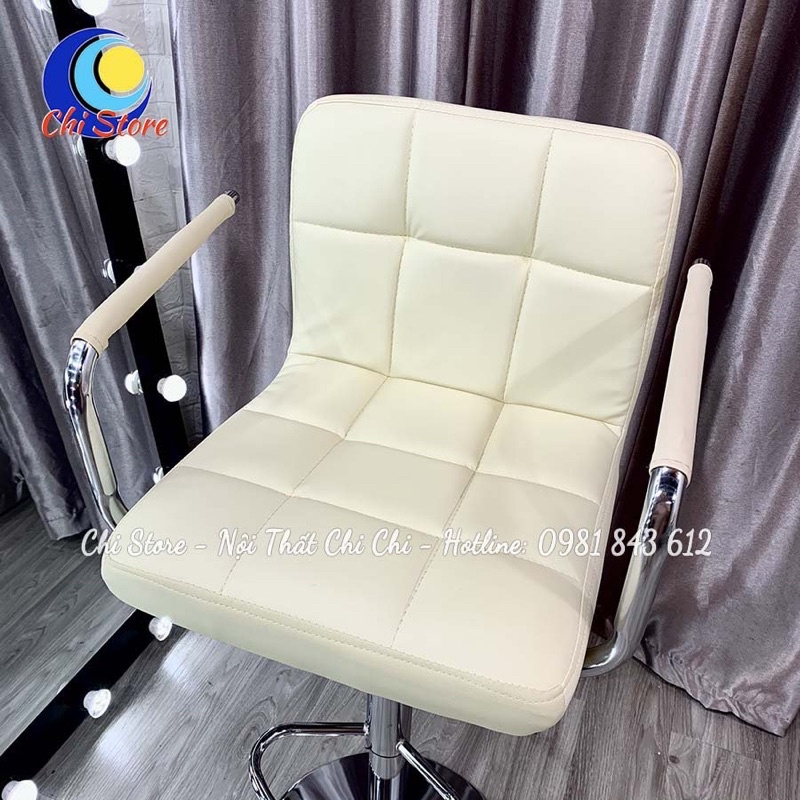 Ghế Ngồi Quầy Lễ Tân Tay Vịn, Ghế Makeup, Chụp Hình Bọc Da Dày Dặn Chỉnh Độ Cao 30-50cm Và Xoay 360 Độ