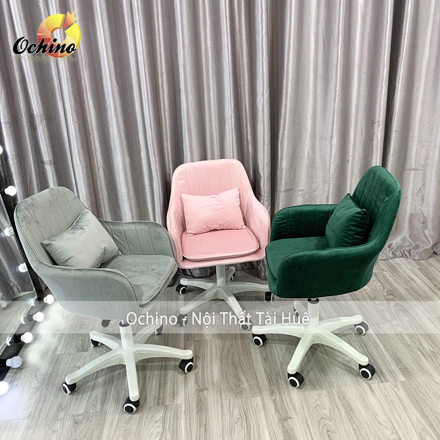 📍Mặt ghế có thể xoay 360 rất tiện dụng. Bọc đẹm dày dặn và êm ái. Chất nỉ tuyết màu tươi mới và sang chảnh, được tặng 1 gối kèm.. đệm nhung tựa tay phù hợp với chiều dài tay cánh tay và tư thế làm việc, chống căng mỏi cơ tay.