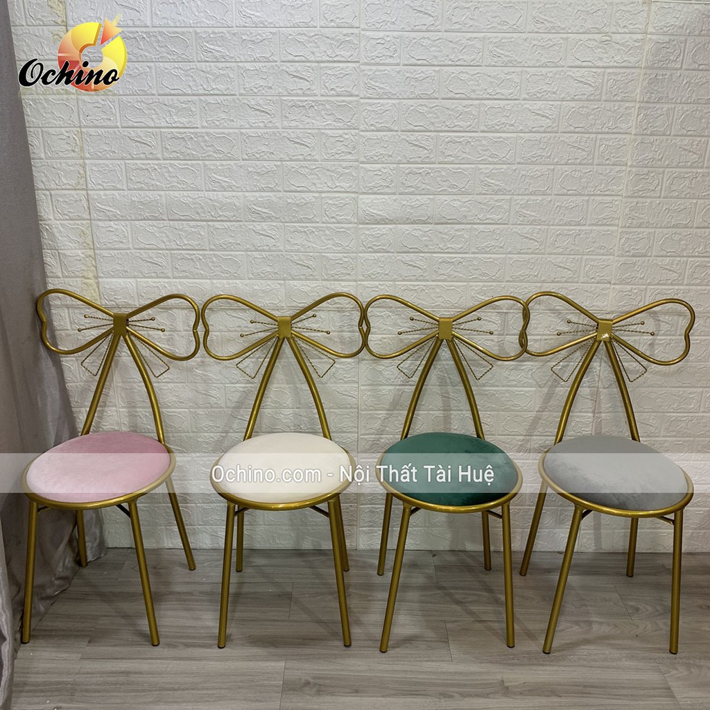 Ghế Ngồi Trang Điểm Hình Nơ Hàng Nhập Khẩu Nguyên Chiếc Mạ Vàng Sang Trọng Không Phai Màu (Đủ Màu)