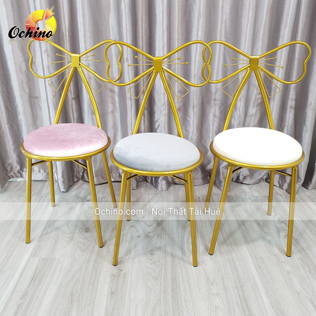 Giới thiệu Ghế Ngồi Trang Điểm Hình Nơ Hàng Nhập Khẩu Nguyên Chiếc Mạ Vàng Sang Trọng Không Phai Màu (Đủ Màu)
