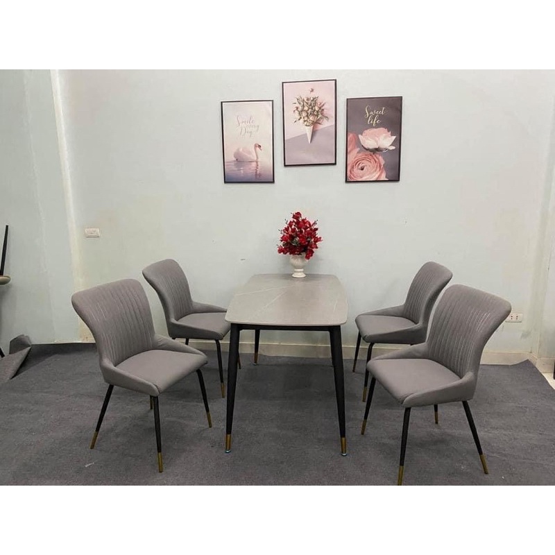* Chất liệu: chân sắt, tựa gỗ uốn bọc da nhập khâut nguyên chiếc