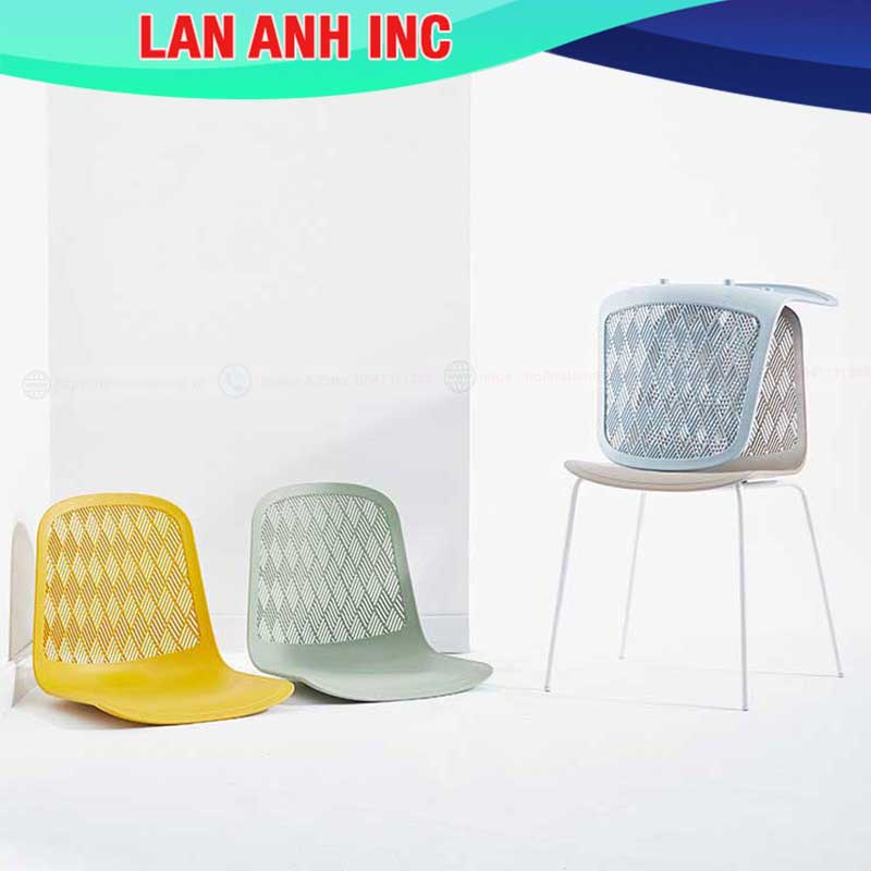 Ghế được làm từ nhựa pp cao cấp đúc nguyên khối dạng mắt lưới thoáng với những đường cong được thiết kế tối ưu hóa sự thoải mái cho người dùng, chân làm bằng sắt sơn tĩnh điện đen hoặc trắng