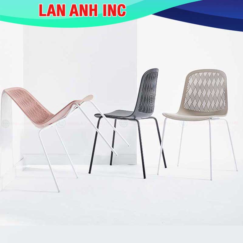Ghế nhựa cafe văn phòng bàn ăn chân sắt tựa lưng cao đẹp eames LAGE22