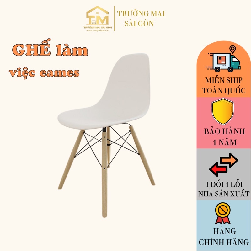 ghế nhựa eames làm việc giá rẻ chân gỗ sồi giằng sắt hiện đại giá rẻ trường mai sài gòn•Chất liệu: Nhựa PP, chân gỗ , sắt sơn tĩnh điện