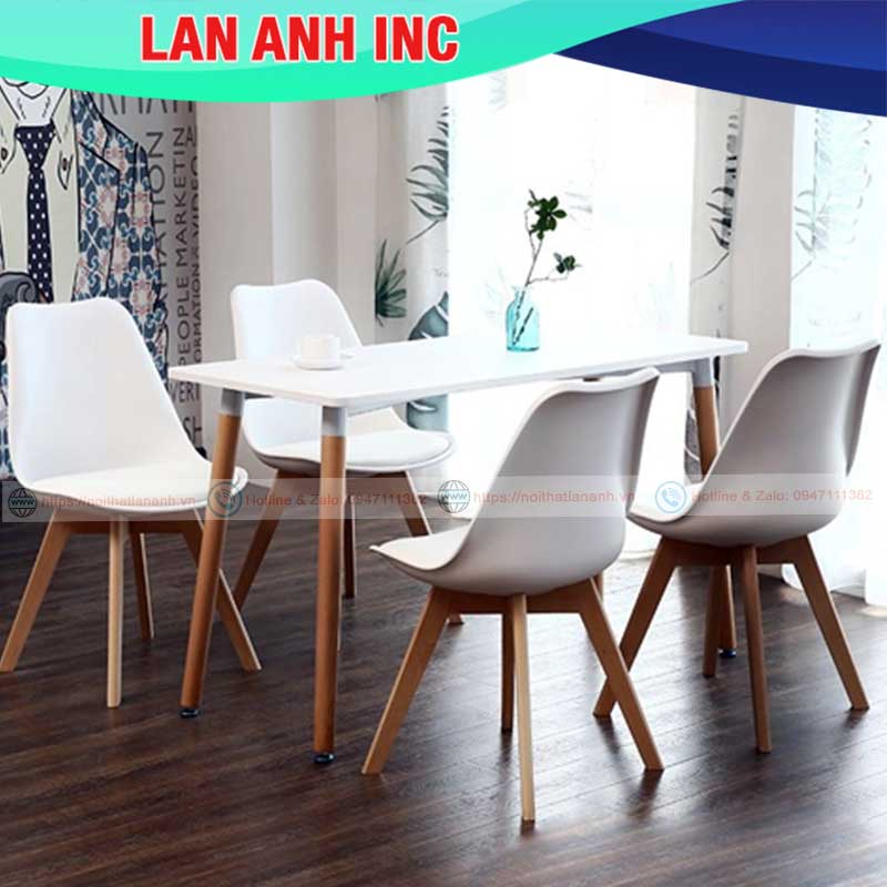 - Với ưu điểm ngoại hình hiện đại, sang trọng, giá cả hợp lý nên ghế nhựa chân gỗ eames LAGN33 được sử dụng cho nhiều không gian nội thất như bàn ghế quán cafe - trà sữa, bàn ghế ăn gia đình, bàn ghế cantin, ghế văn phòng, ghế làm việc tại gia....