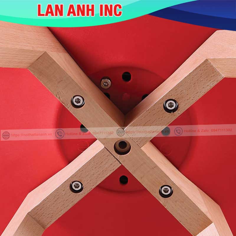 Chân gỗ sồi to cứng cáp được liên kết với nhau bởi rãnh và 5 ốc lục giác dài thuận tiện tháo lắp.
