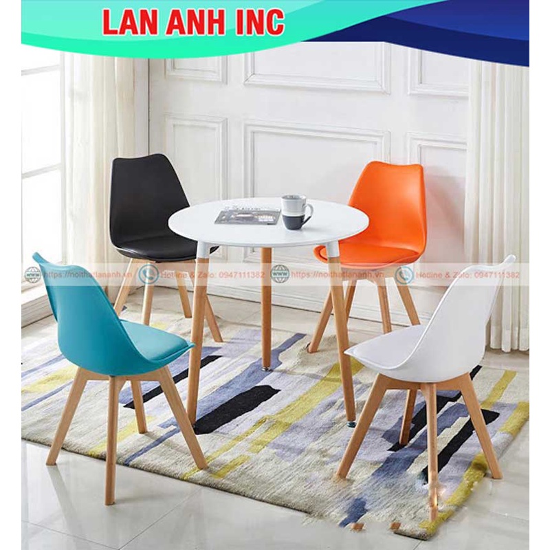 Ghế nhựa quán cafe văn phòng đẹp chân gỗ tựa lưng cao nệm lót simili giá rẻ eames LAGN33