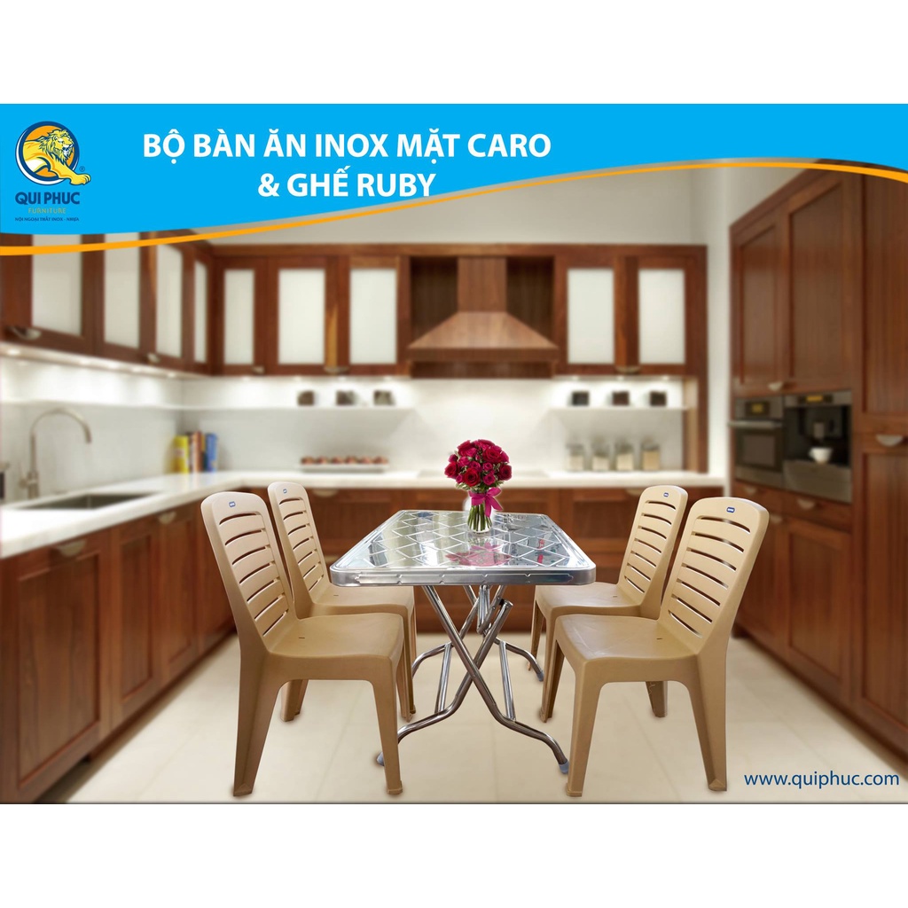 Ghế RUBY Qui Phúc phù hợp làm ghế ăn gia đình hay sử dụng trong các nhà hàng, quán ăn... rất sang trọng.