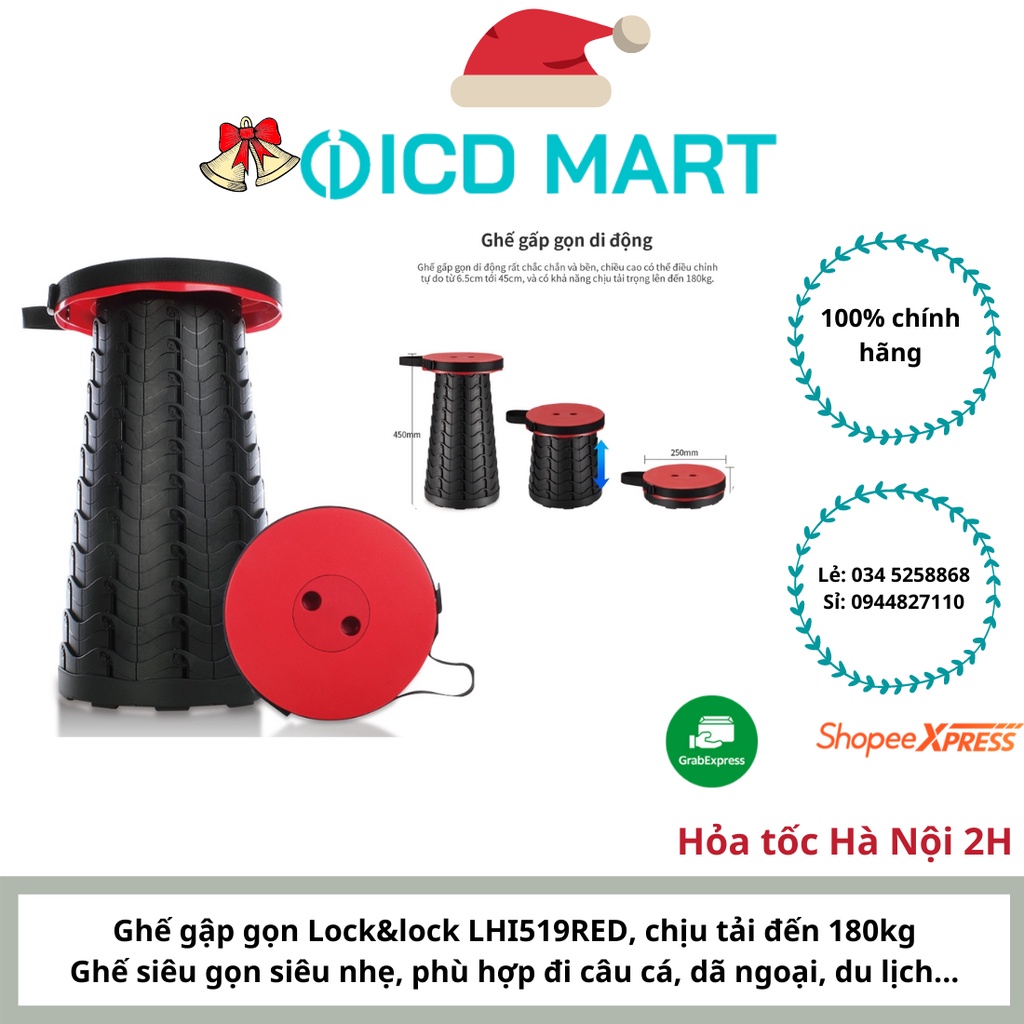 Nhà cửa & Đời sống > Nội thất > Ghế, ghế dài, ghế đẩu || Ghế nhựa thông minh gấp gọn cho dã ngoại, hoạt động ngoài trời Lock_Lock - Màu đỏ LHI519RED, chịu đến 180kgCòn hàng