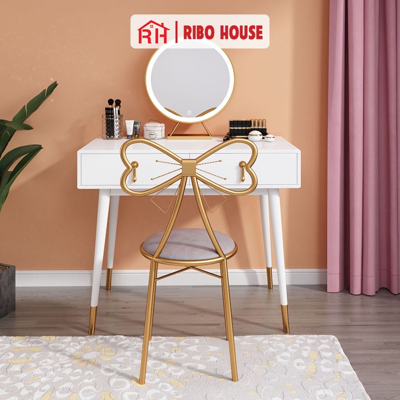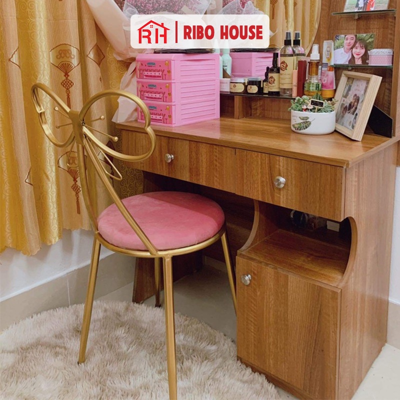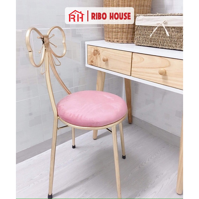 Nhà cửa & Đời sống > Nội thất > Bàn || Ghế nơ RIBO HOUSE đệm vải nhung nỉ, ghế trang điểm trang trí phòng ngủ phòng khách decor quán cà phê nails spa RIBO40Còn hàng