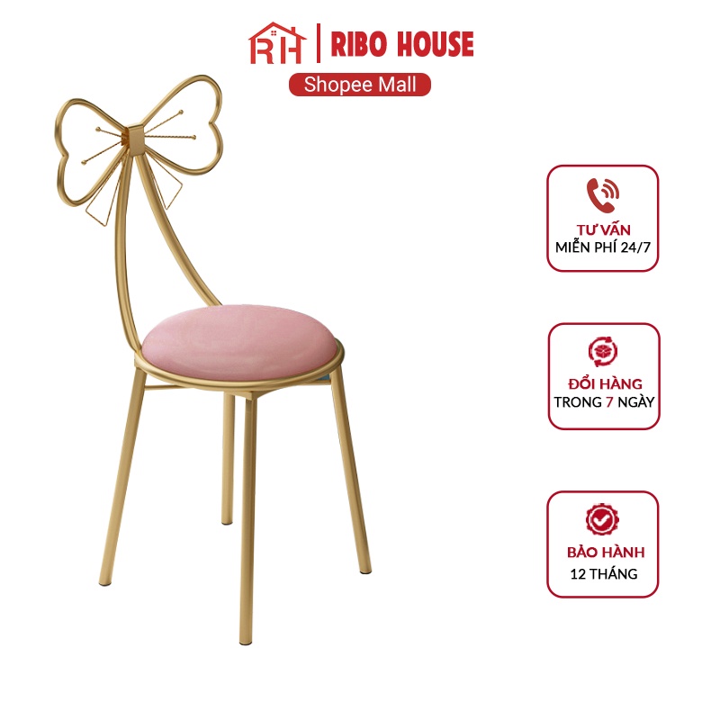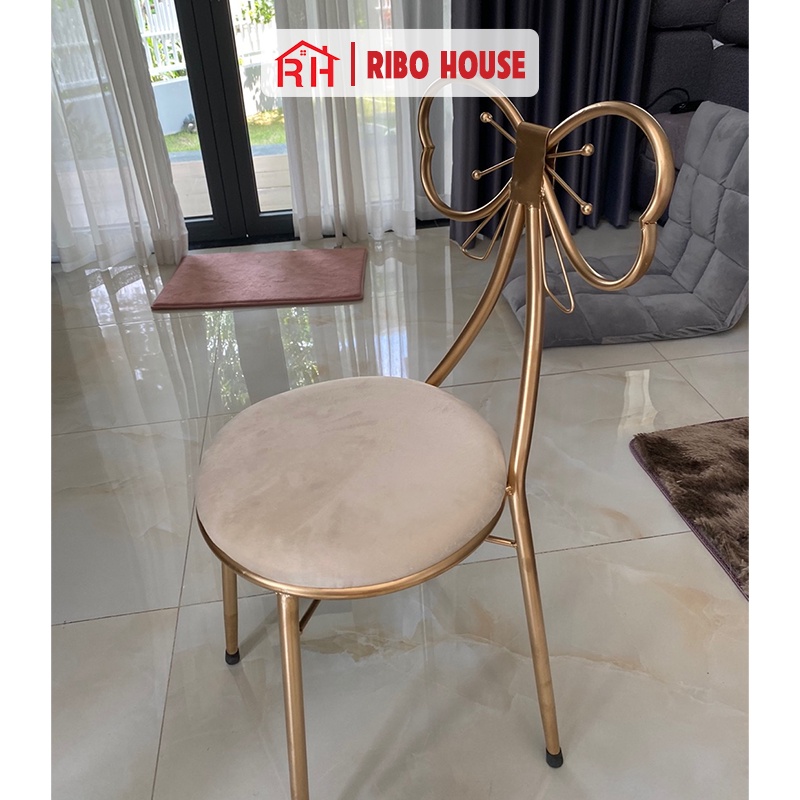 Giới thiệu Ghế nơ RIBO HOUSE đệm vải nhung nỉ, ghế trang điểm trang trí phòng ngủ phòng khách decor quán cà phê nails spa RIBO40