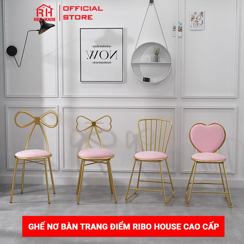 Giới thiệu Ghế nơ RIBO HOUSE khung kim loại sơn tĩnh điện, ghế trang điểm trang trí phòng ngủ decor quán cà phê nails spa RIBO40