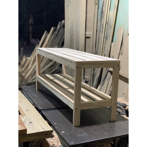 Nhà cửa & Đời sống > Nội thất > Ghế, ghế dài, ghế đẩu || Ghế PALLET GỖ TỰ NHIÊN DECOR / 2 tầng , Kèm kệ giày / 90x30 cao 40Còn hàng