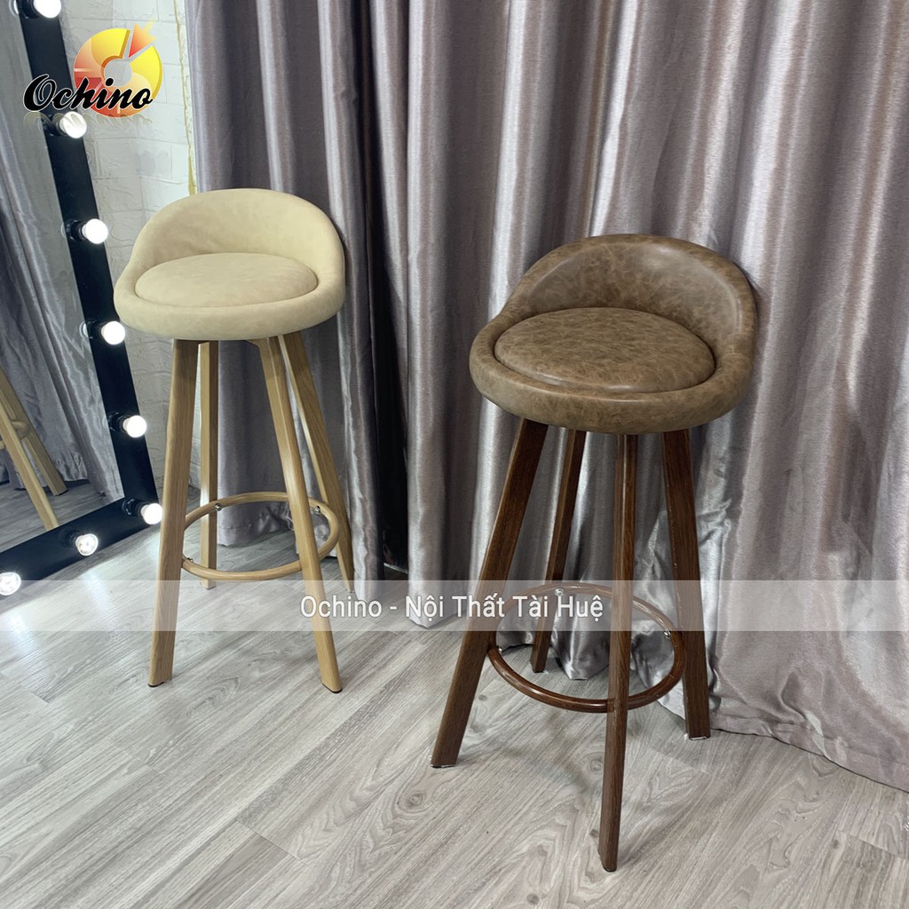 Ghế Quầy bar, Ghế bar Xoay 360 Chân Sắt Sơn Giả Gỗ Hàng Nhập Khẩu Nguyên Chiếc ( Có Sẵn)