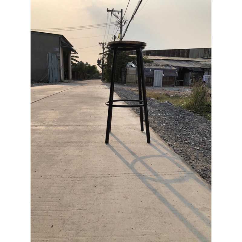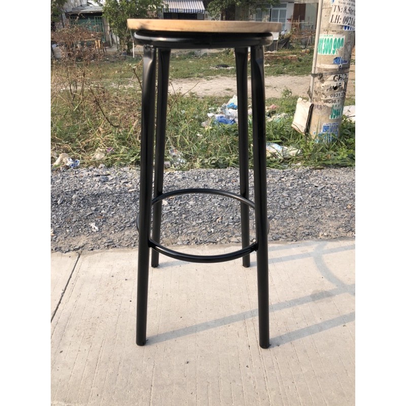 - Ghế ngồi quầy pha chế cao 72cm, đường kính mặt ngồi 30cm, đường kính chân 45cm- Cấu tạo: sắt sơn tĩnh điện, mặt gỗ cao su sơn PU bóng