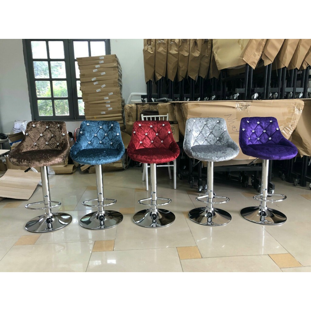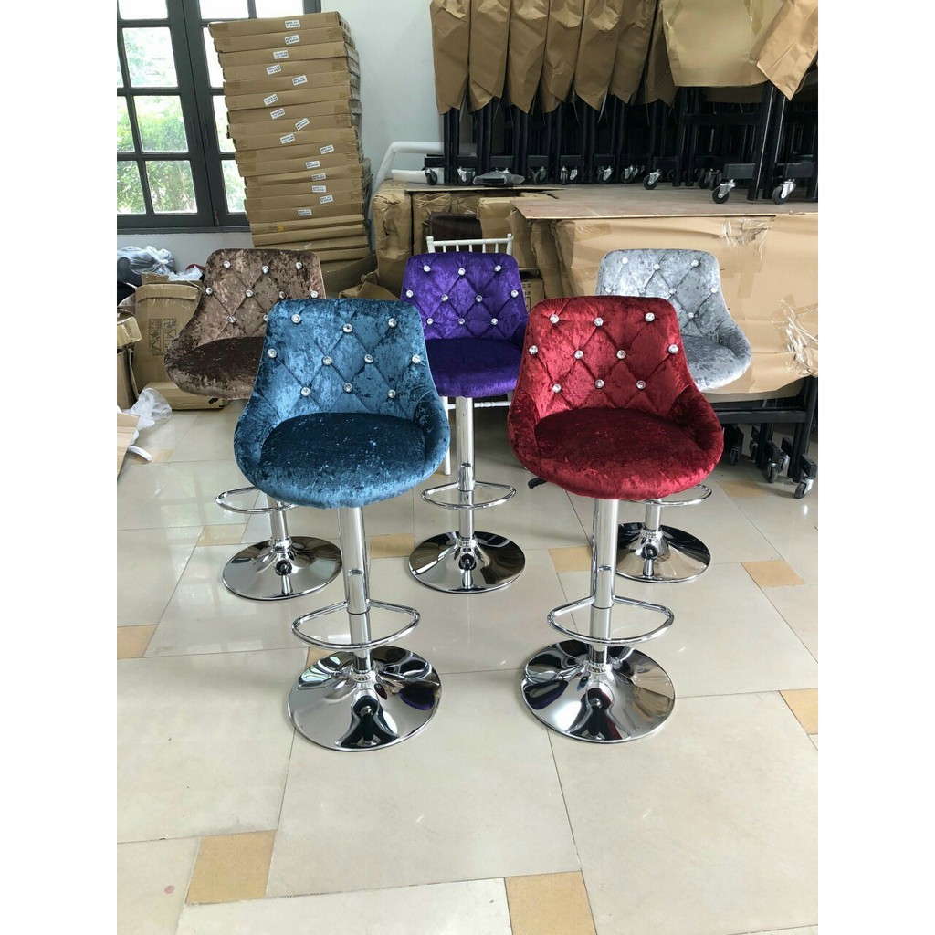 Chi Tiết Sản PhẩmGhế được bọc vải nỉ nhung chân mạ cùng điểm nhấn là những viên đá kim cương lấp lánh khi ghế được ánh sáng chiếu vào