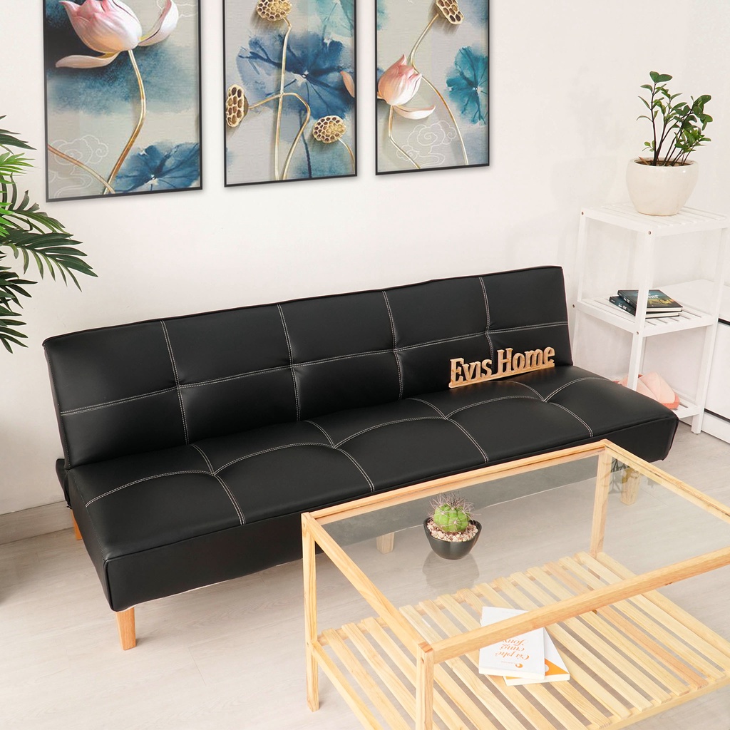 Nhà cửa & Đời sống > Nội thất > Ghế sofa || Ghế Sofa Evis Home - Chất Liệu Da Trơn Láng Có Hoạ Tiết Chần Chỉ - Kết Hợp Giường Ngủ Hiện Đại - Màu ĐenCòn hàng