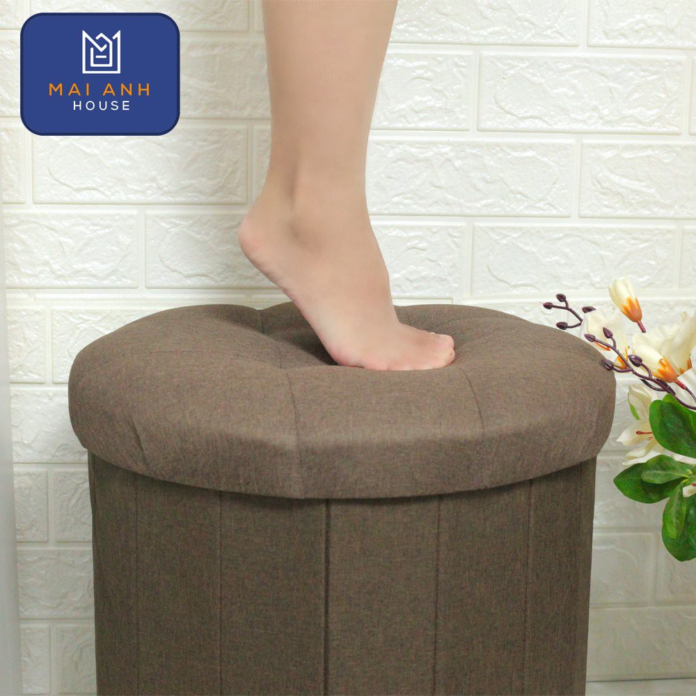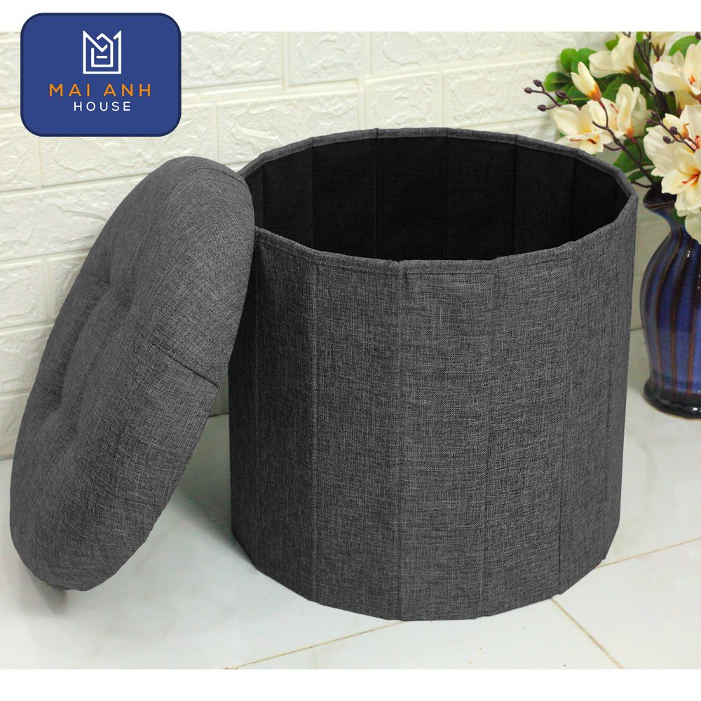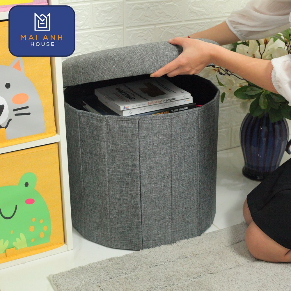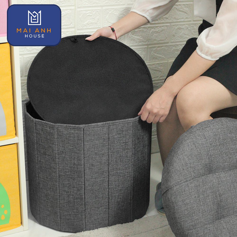 Ghế đôn tròn kiêm hộp đựng đồ gấp gọn Mai Anh House MA09, thân gỗ MDF bọc vải Oxford 600D, nắp nệm mút êm ái