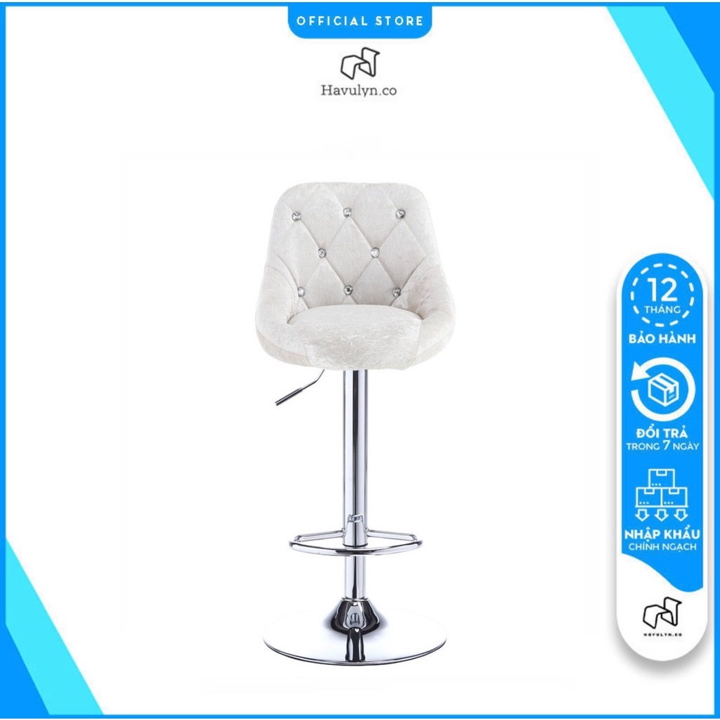 Ghế Spa Make Up Trang Điểm, Ghế Quầy Bar Nhung Chân Xoay Inox Có Tựa Lưng Nệm êm