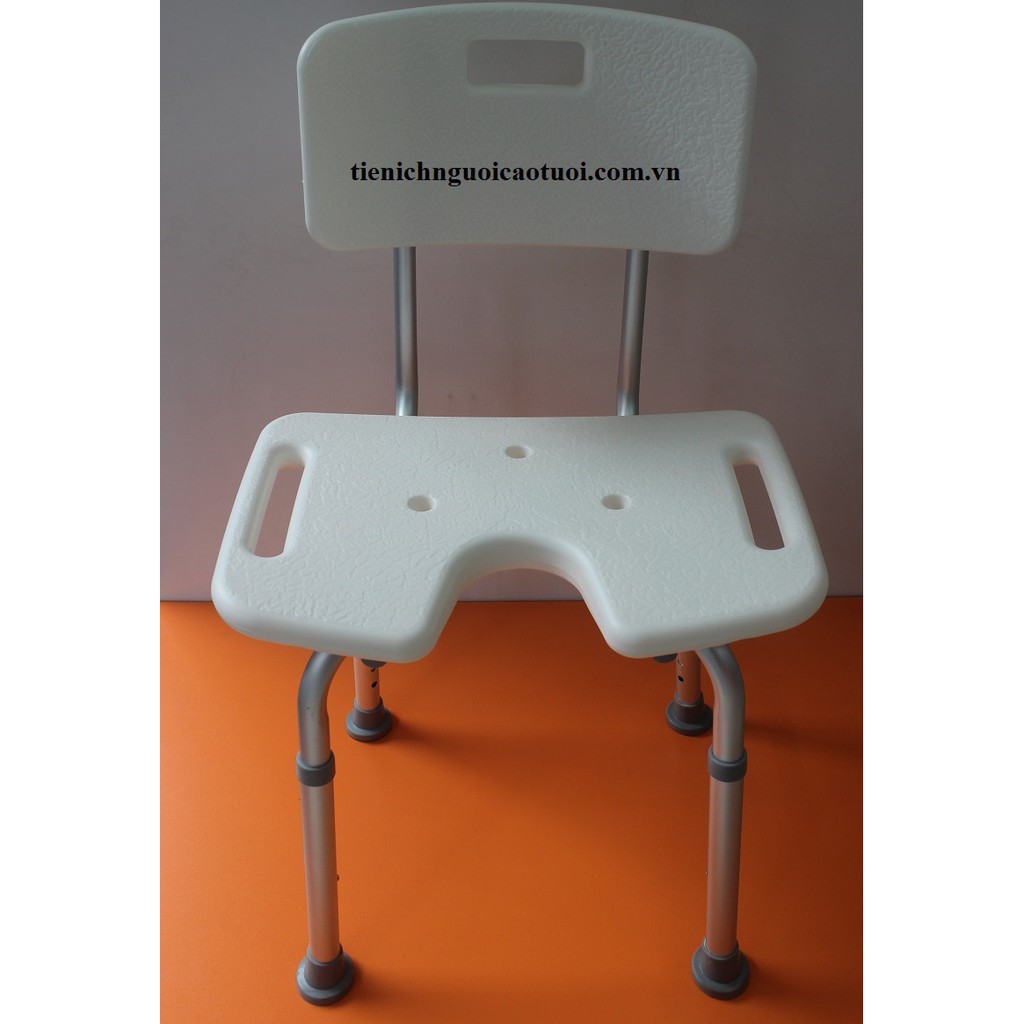 - Ghế có mặt ghế được khoét hình bán nguyệt để rễ ràng vệ sinh bộ phận sinh dục cho người già trong khi tắm