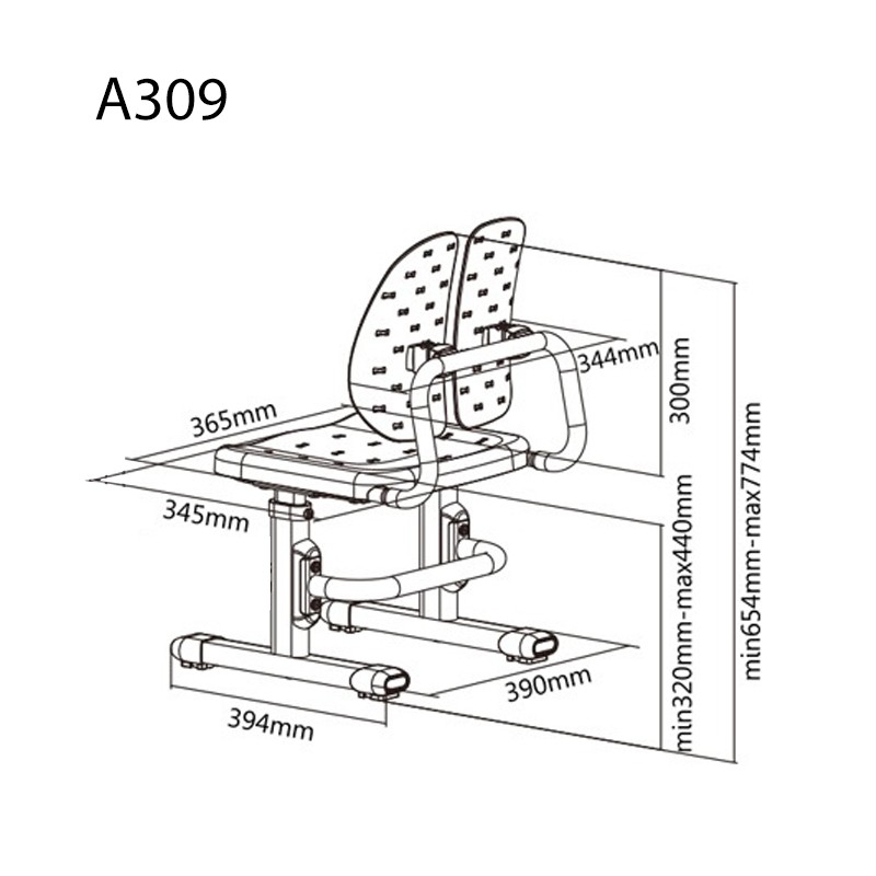 Ghế thay đổi chiều cao cho học sinh A309Ghế thay đổi chiều cao A309 dành cho học sinh tiểu học với cấu trúc tựa lưng dạng 2 cánh có khả năng giảm 65% lực tác động lên lưng và cột sống.