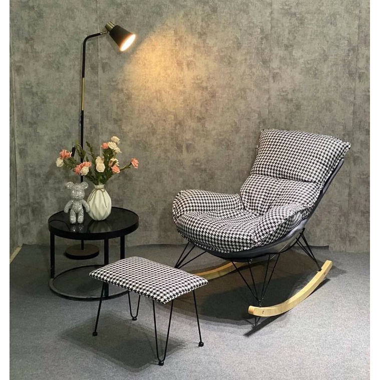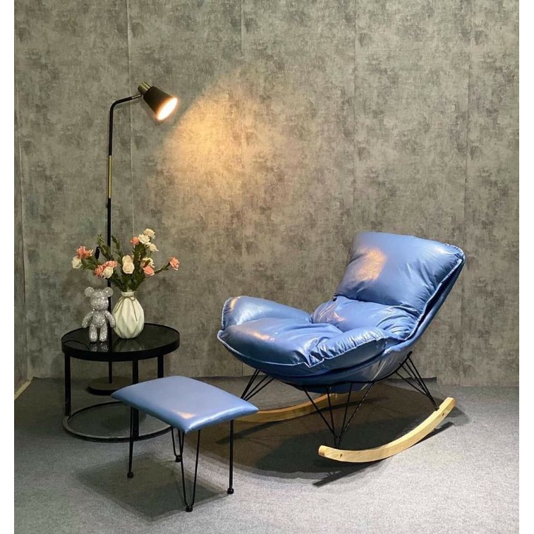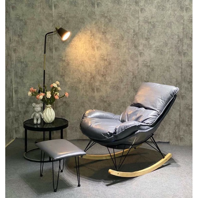 Ghế thư giãn bập bênh đọc sách bọc da, nỉ sang trọng khung sắt chân gỗ bền đẹp (tặng đôn)