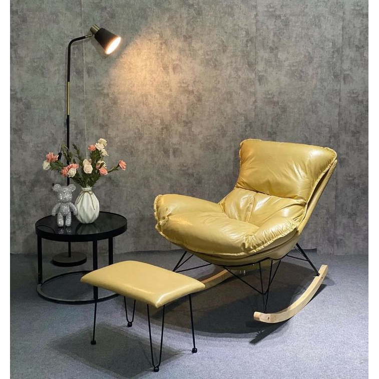 Giới thiệu Ghế thư giãn bập bênh đọc sách bọc da, nỉ sang trọng khung sắt chân gỗ bền đẹp (tặng đôn)