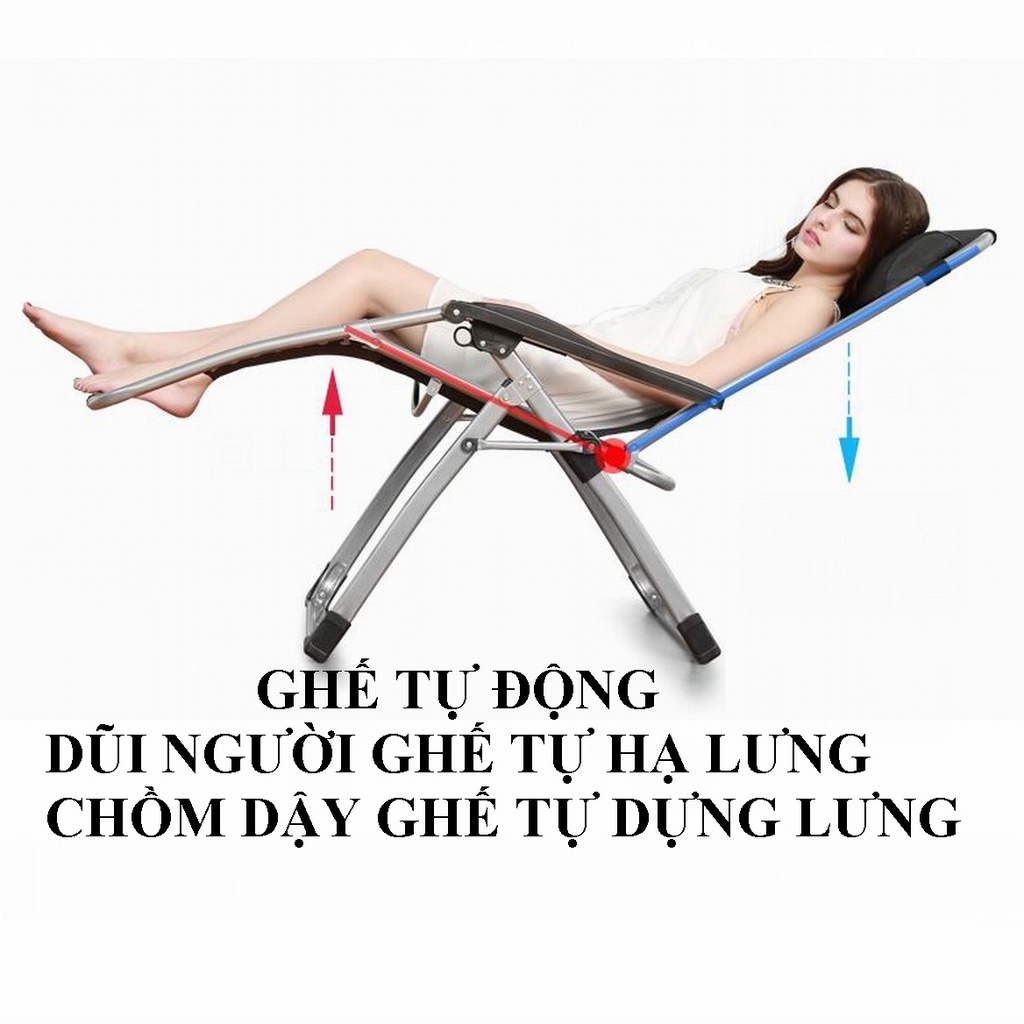 Ghế thư giãn Hồng Hà , gấp xếp, hiện đại, tự hạ lưng ghế xuống khi dũi người ra sau, tự dựng lưng ghế lên khi người ngồi chồm dậy.