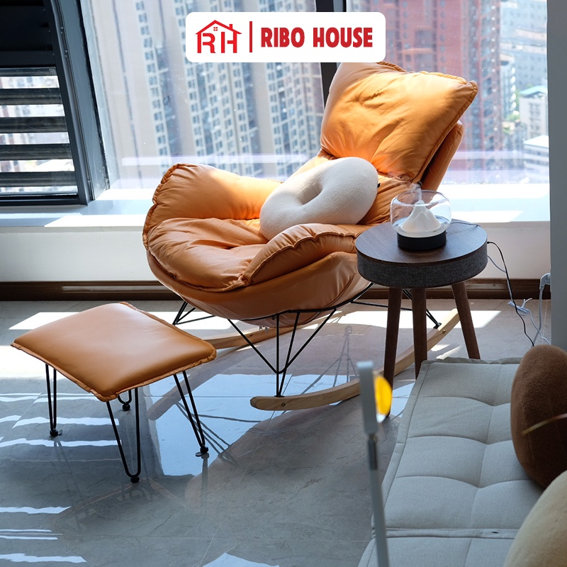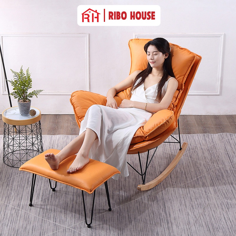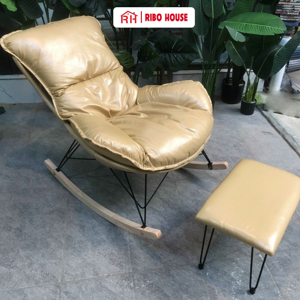 Nhà cửa & Đời sống > Nội thất > Ghế sofa || Ghế thư giãn RIBO HOUSE bập bênh khung kim loại sơn tĩnh điện chân gỗ trang trí phòng ngủ phòng khách ban công RIBO205Còn hàng