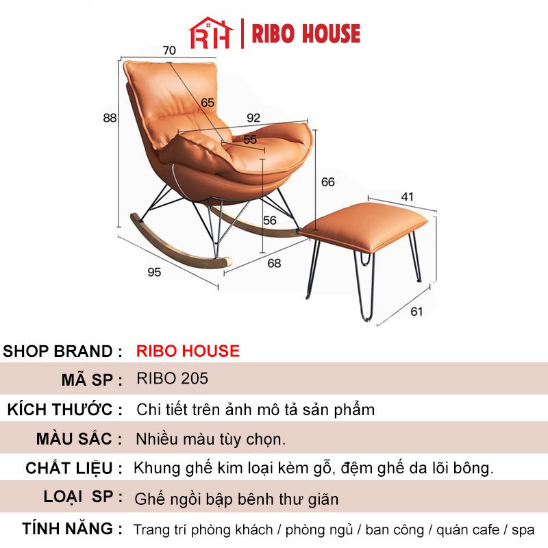 Giới thiệu Ghế thư giãn RIBO HOUSE bập bênh khung kim loại sơn tĩnh điện chân gỗ trang trí phòng ngủ phòng khách ban công RIBO205