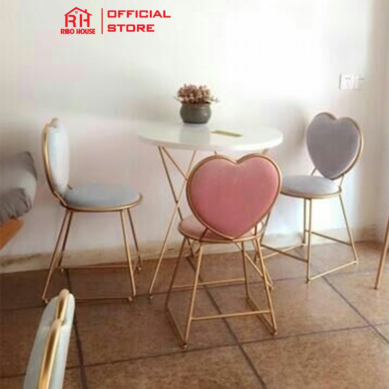 Ghế tim bàn trang điểm RIBO HOUSE bọc đệm, ghế trang trí phòng khách tiệm nails spa quáncà phê RIBO60