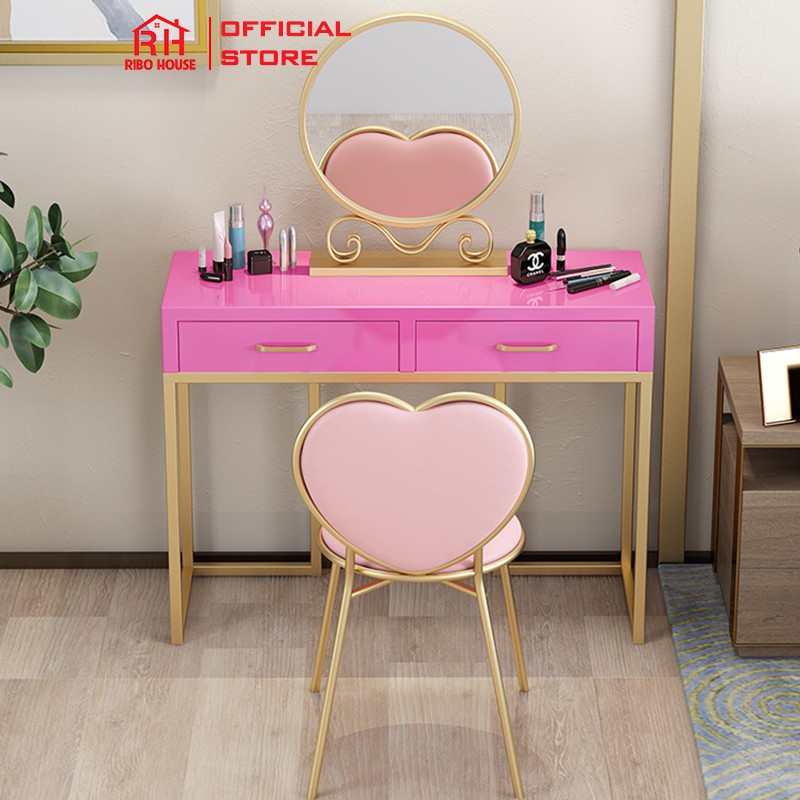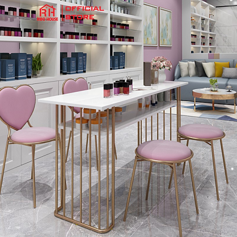 Giới thiệu Ghế tim bàn trang điểm RIBO HOUSE bọc đệm, ghế trang trí phòng khách tiệm nails spa quáncà phê RIBO60