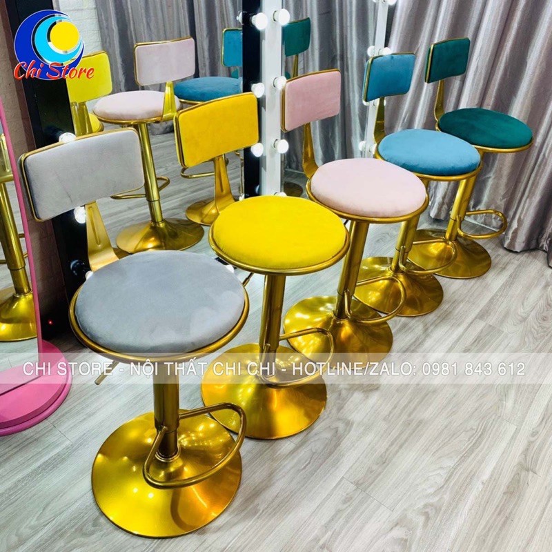 Ghế Trang Điểm, Ghế Makeup, Chụp Hình Chân Màu Vàng Đồng Đệm Nhung Cao Cấp