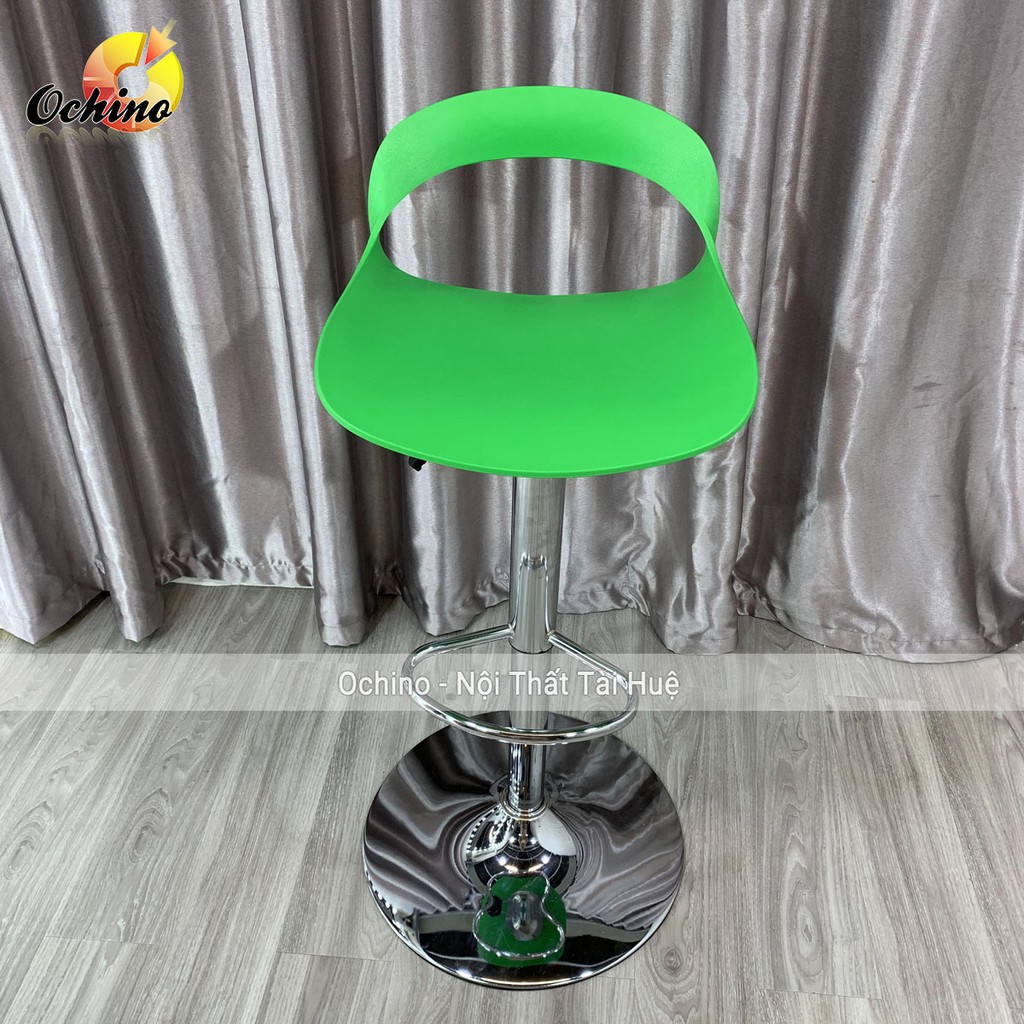 ⭐Chân ghế bằng kim loại mạ inox tĩnh điện dày chắc chắn. Có cần gạt để điều chỉnh độ cao từ 60cm tới 80cm và xoay 360 độ.