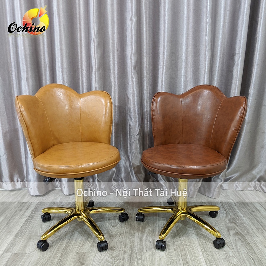 Ghế Trang Điểm Xoay Chân Vàng Cao Cấp, Ghế Makeup Mẫu Sen Cách Điệu (Hình Thật Shop Chụp)