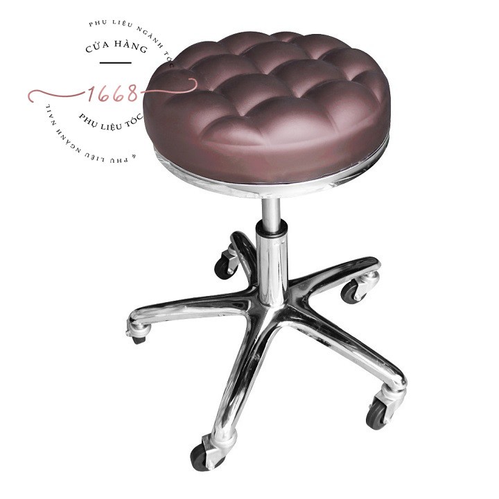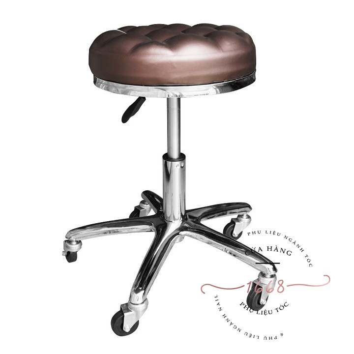 GHẾ TRÒN XOAY CARO LOẠI MỚI (MÀU NÂU)Ghế xoay chân lốc có giá đỡ kim loại mạ inox, có 5 bánh xe cao su chắc chắn. Ghế không thể gập lại, nhưng tháo lắp dễ dàng. Có cần tuỳ chỉnh độ cao của ghế.